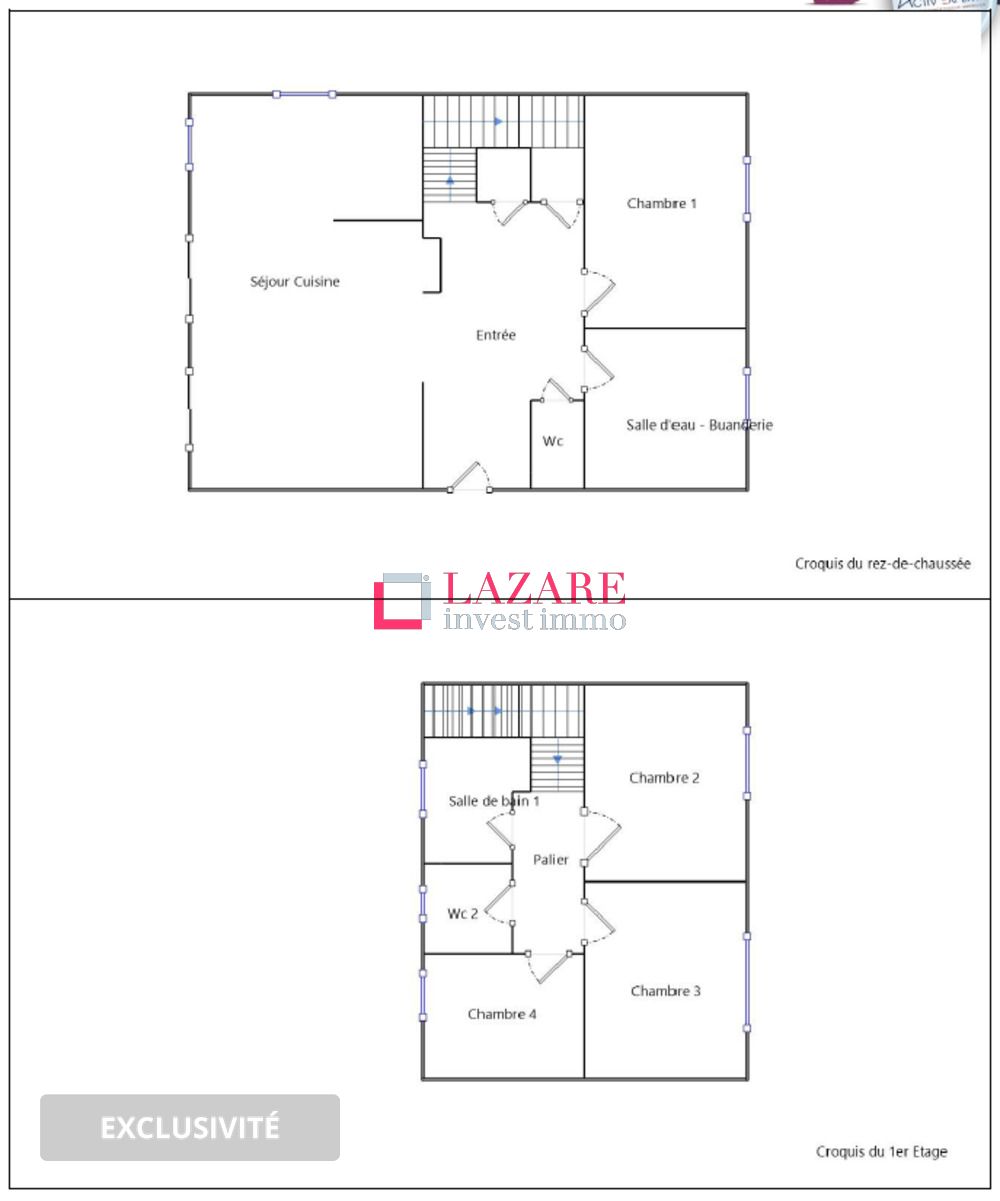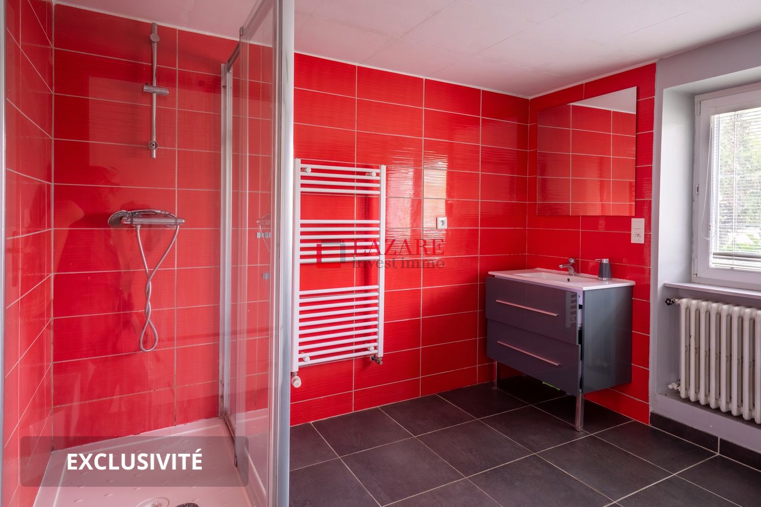 - A l'étage : 3 chambres dont une de 16m2, une salle de bain ( meuble vasque et vasque compris robinetterie mitigeuse, miroir avec éclairage, baignoire avec douchette avec flexible et support ) et un WC séparé.