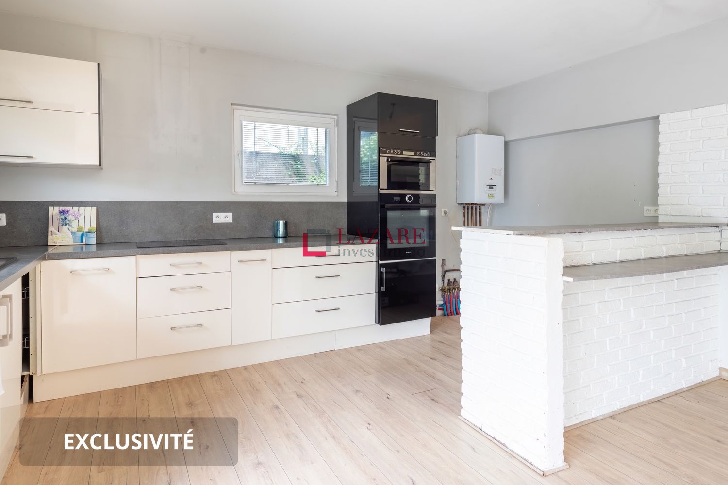 - Au rez-de-chaussée : une entrée, un dégagement, une pièce de vie lumineuse avec cuisine ouverte aménagée et équipée ( évier avec bac et robinet mitigeur et crédence, meubles bas et haut, plan de travail stratifié – crédence, four, four micro-ondes, plaque de cuisson vitrocéramique 4 feux, réfrigérateur/congélateur, hotte aspirante, lave-vaisselle ), une chambre de 13m2 avec placard, une salle d'eau ( meuble vasque et vasque compris robinetterie mitigeuse, miroir avec éclairage, receveur de douche avec douchette, flexible et support et paroi de douche, alimentation et évacuation pour lave-linge ) et un WC séparé.