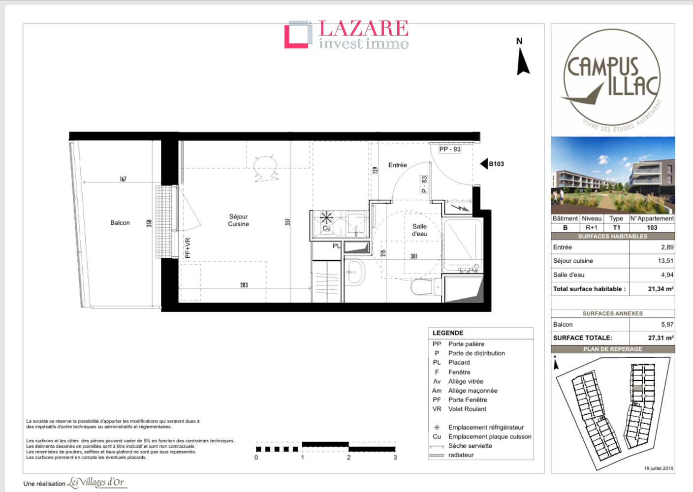 Au sein de la résidence CAMPUS ILLAC, récente et sécurisée avec ascenseur et aux prestations soignées, retrouvez ce T1 de 21,42 m2 au 1er étage du bâtiment B avec un balcon de 6.45 m2 exposé Ouest.