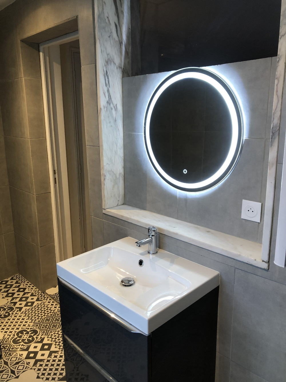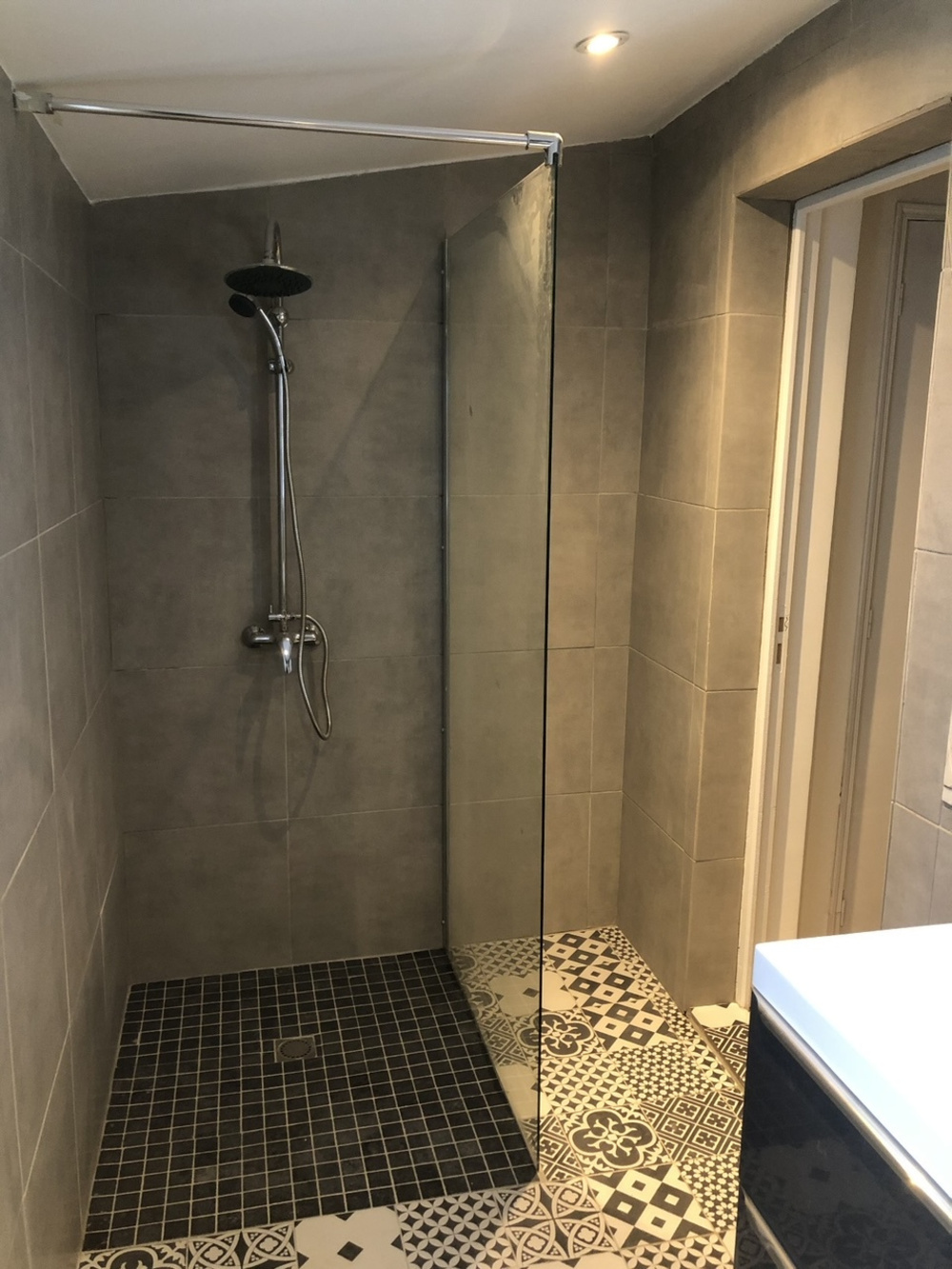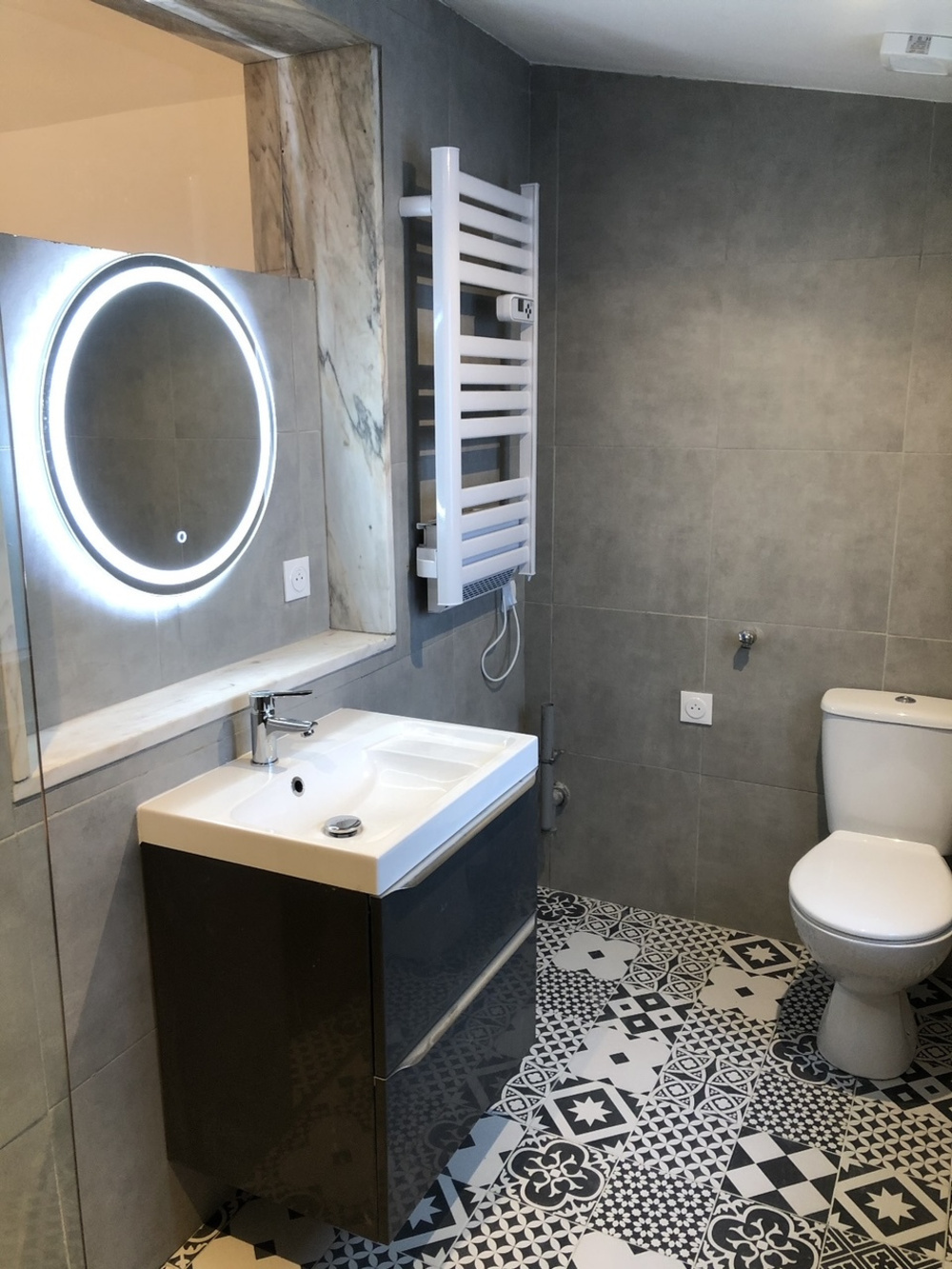 Ce T1 Bis est composé d'une pièce de vie avec cuisine ouverte aménagée et équipée ( évier un bac avec égouttoir et plan de travail, meubles hauts et bas, plaque vitrocéramique, hotte avec point lumineux, réfrigérateur, four, branchements LV/LL ), d'une chambre, d'une salle d'eau ( douche avec porte vitrée, meuble vasque avec miroir et éclairage, radiateur sèche-serviettes ) avec WC .