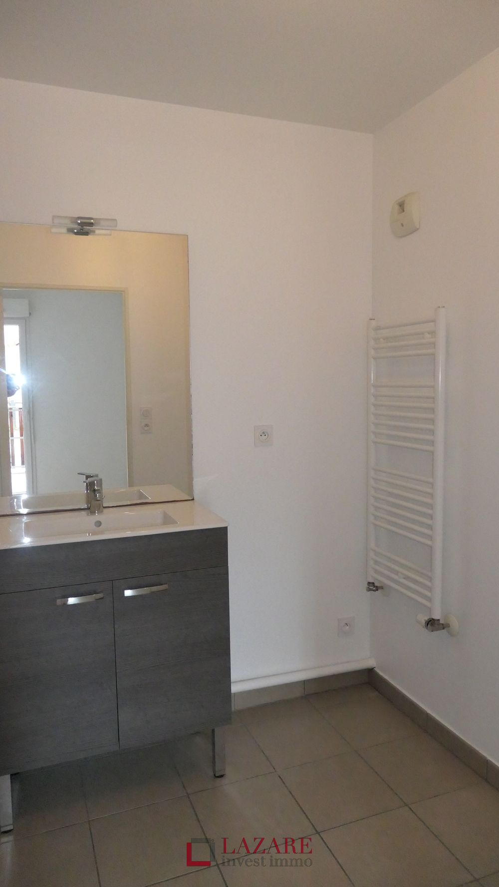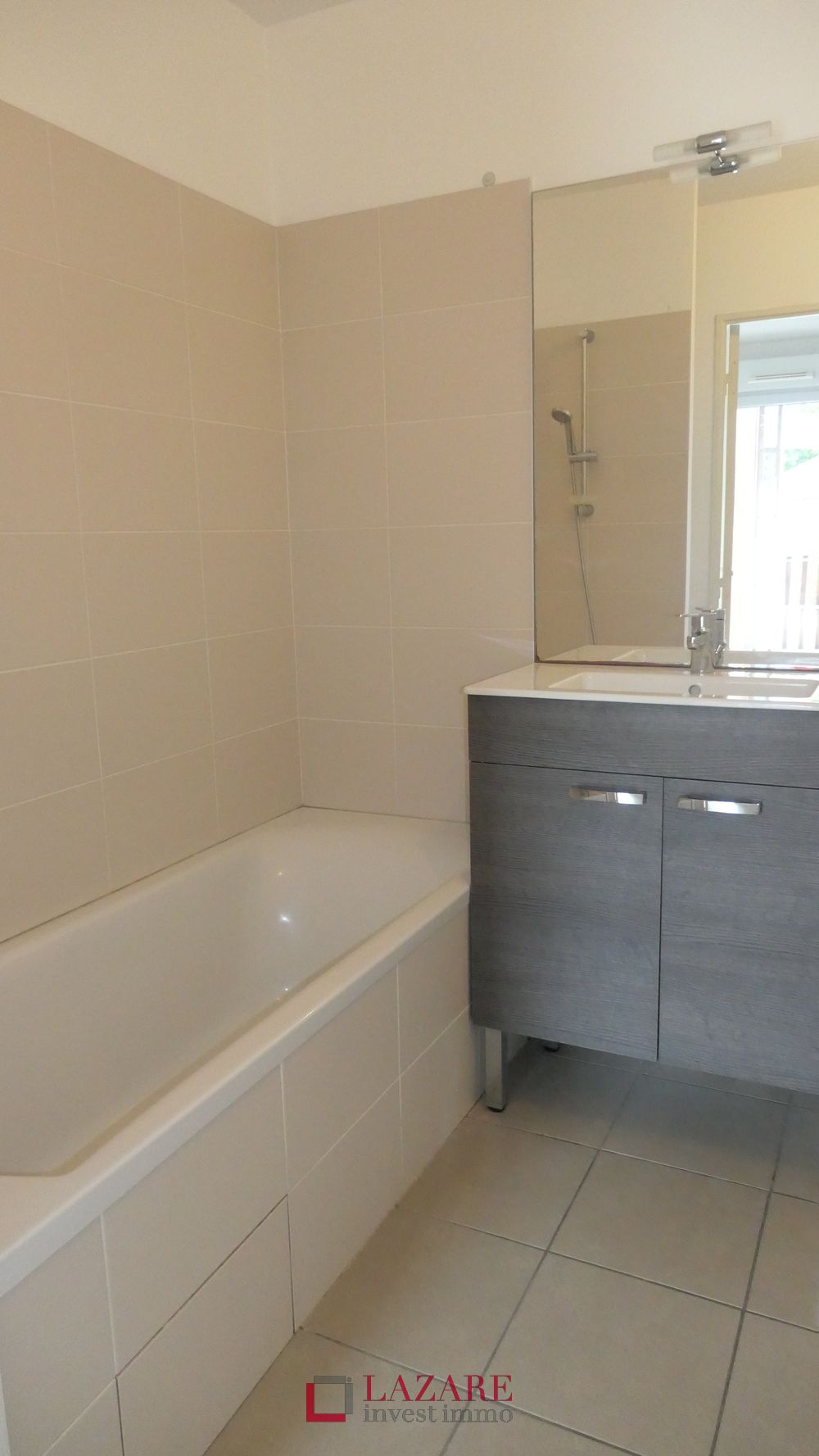 Un chambre de plus de 11m² donne également sur le balcon/terrasse. Une salle de bains avec rangement et sèche serviette, un wc indépendant.