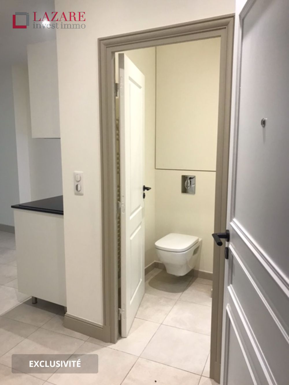 Appartement composé d' une entrée, d'une cuisine ouverte aménagée et équipée ( plan de travail, évier un bac avec égouttoir, meubles hauts et bas, plaques de cuisson vitrocéramique, hotte, réfrigérateur-top, alimentation et évacuation en attente LL/LV ), d’une pièce de vie, d'une salle d'eau ( meuble vasque et vasque avec robinet mitigeur, miroir avec éclairage, receveur de douche compris douchette et flexible sur barre avec porte vitrée, radiateur sèche-serviettes ) avec WC.