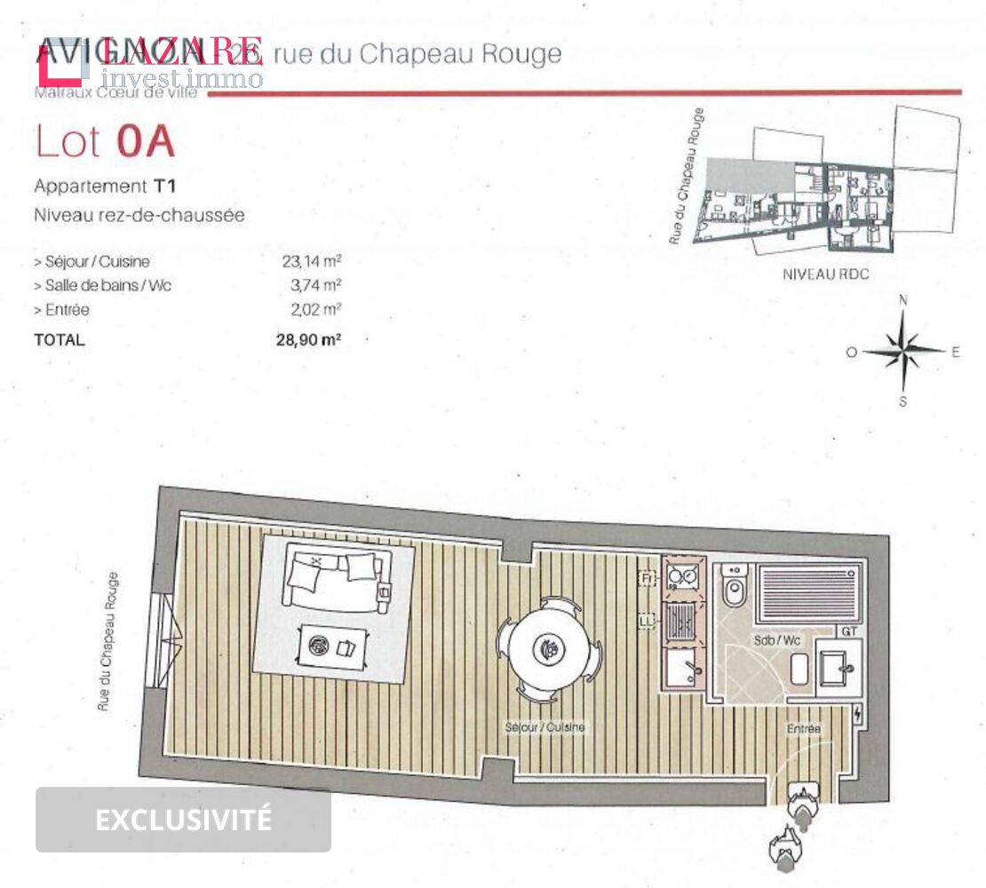 Au sein de la RESIDENCE « 26 RUE DU CHAPEAU ROUGE » – ( programme Malraux), idéal étudiants , à 5 minutes à pied de la faculté et du lycée AUBANEL, au cœur de la ville d'Avignon intra-muros, à deux pas de la mairie, de la place de l’Horloge, de la place Pie ainsi que du palais des Papes, à louer appartement T1 de 29,14 m2 entièrement rénové et situé au rez-de-chaussée de ce bel immeuble typique de la région, proche de tous commerces et services .