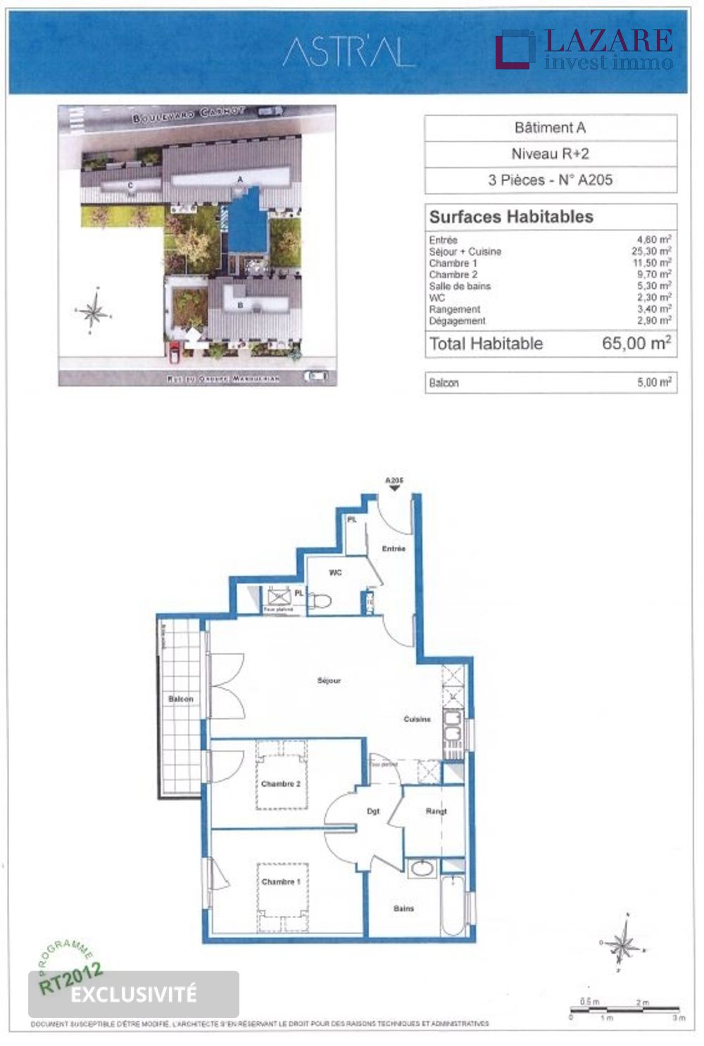 Au sein de la résidence récente ASTR’AL, résidence sécurisée avec ascenseur et aux prestations soignées, retrouvez cet appartement T3 de 65 m2 situé au 2ème étage du bâtiment A avec un balcon de 5 m2 exposé Ouest ans le prolongement du séjour et d'une chambre .