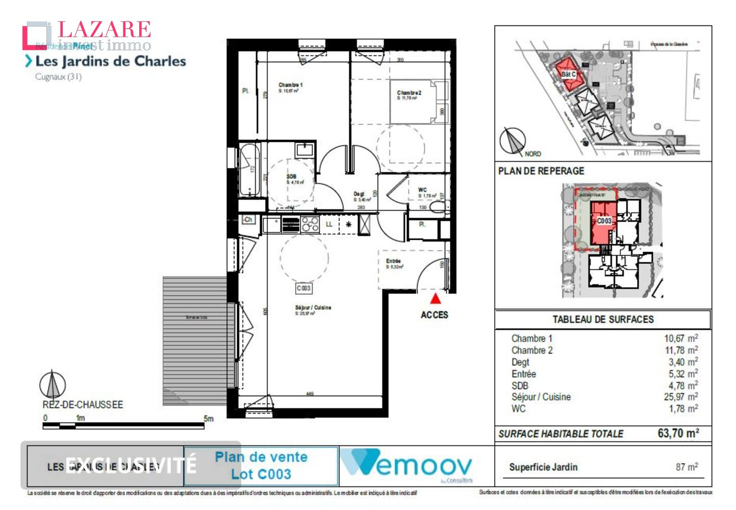 Au sein de la résidence LES JARDINS DE CHARLES, résidence récente, sécurisée, aux prestations soignées, retrouvez cet appartement T3 de 63,70 m2 situé au rez-de-chaussée du bâtiment C avec une terrasse et un jardin de 87 m² exposés Ouest dans le prolongement du séjour.