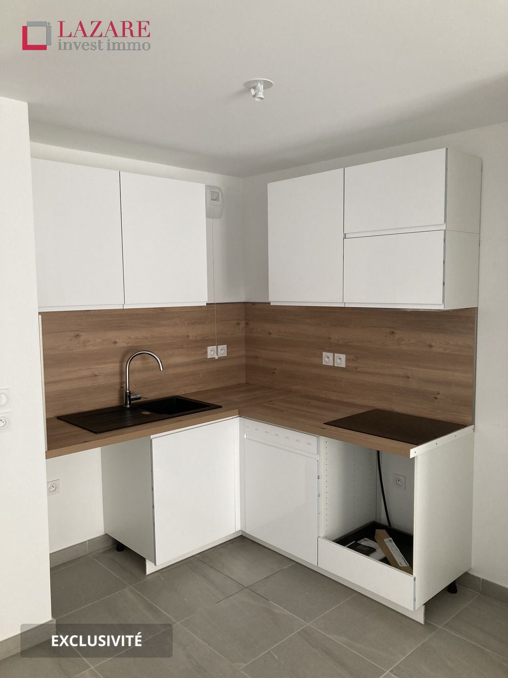 Ce T3 est composé d'une entrée, d'un séjour avec cuisine ouverte aménagée et équipée ( meubles hauts et bas, évier un bac avec égouttoir et robinetterie mitigeuse, hotte aspirante, plaque de cuisson à induction 3 feux, alimentation et évacuation en attente LV ), d' un dégagement, de deux chambres dont une avec placard, d'une salle de bains ( meuble vasque et vasque compris robinetterie mitigeuse, miroir avec éclairage, baignoire compris douchette, flexible sur barre et pare-baignoire, radiateur sèche-serviettes, alimentation et évacuation en attente LL ), d'un WC séparé.