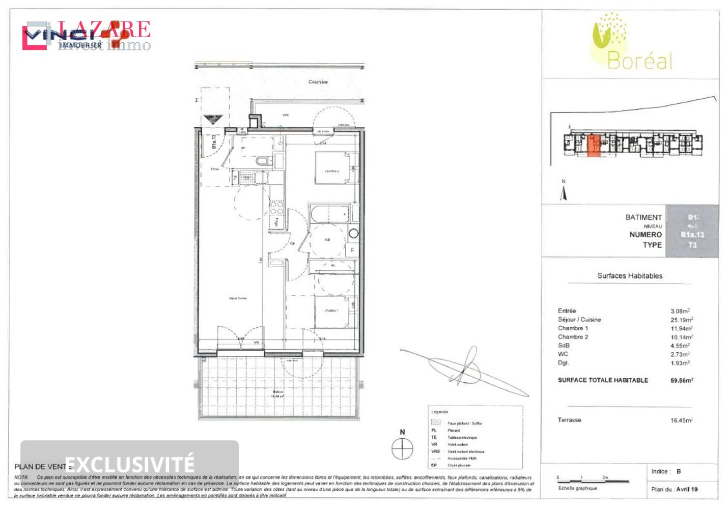 Au sein de la résidence BOREAL, résidence récente, sécurisée, avec ascenseur et aux prestations de qualité, retrouvez ce bel appartement T3 de 59,56 m2 au 1er étage du bâtiment B1avec une terrasse de 16,45 m2 exposée Sud coté jardin et dans le prolongement du séjour et d'une chambre .