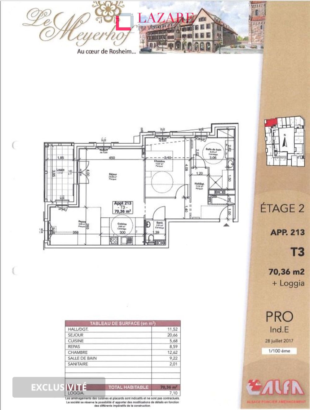 Au sein de la résidence LE MEYERHOF à ROSHEIM, retrouvez ce bel appartement T3 de 70,36 m2 au 2ème étage avec une loggia de 7,10 m2 coté séjour et salle à manger et donnant sur une vaste cour intérieure.