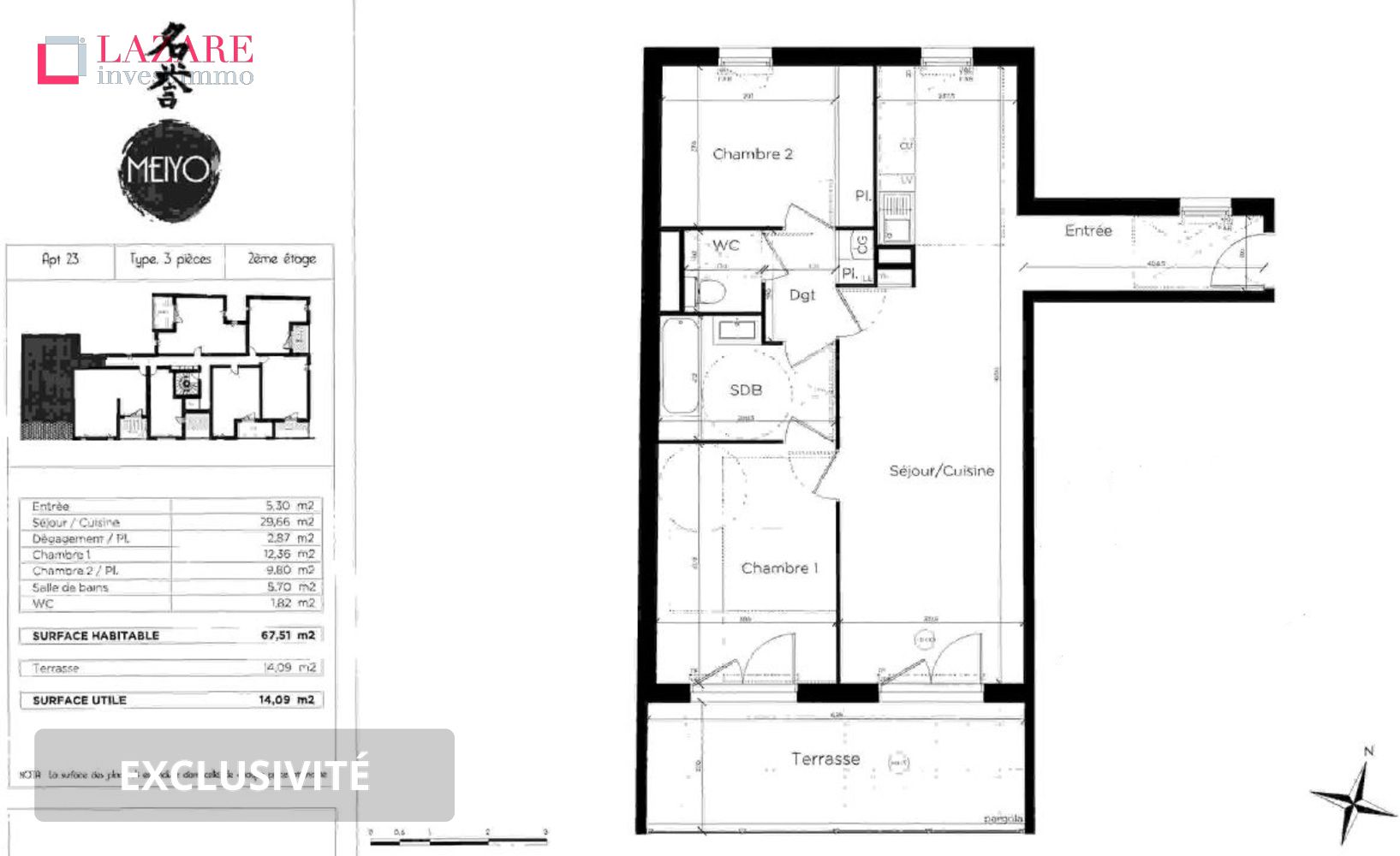 Au sein de la Résidence MEIYO, résidence récente et sécurisée avec ascenseur et aux prestations de qualité, retrouvez ce bel appartement T3 de 66,77 m2 au 2ème étage de la résidence avec une terrasse de 13,71 m2 exposée Sud dans le prolongement du séjour et d'une chambre.
