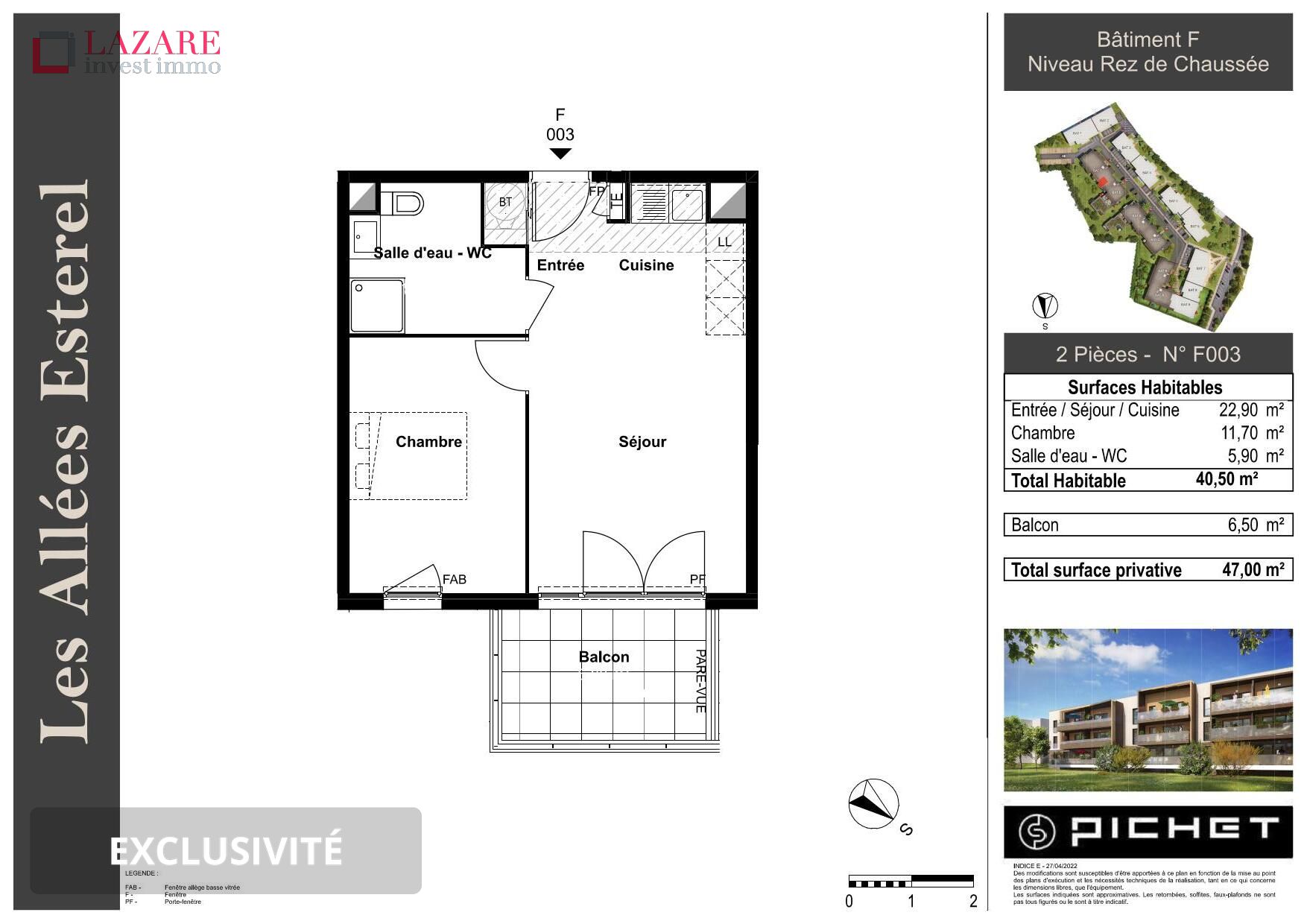 Au sein de la résidence LES ALLÉES ESTEREL, neuve et sécurisée avec ascenseur et prestations de qualité, retrouvez ce bel appartement T2 de 40,50 m2 au rez de chaussée du bâtiment F avec un balcon de 6,50 m2 exposé Sud/Ouest dans le prolongement du séjour.
